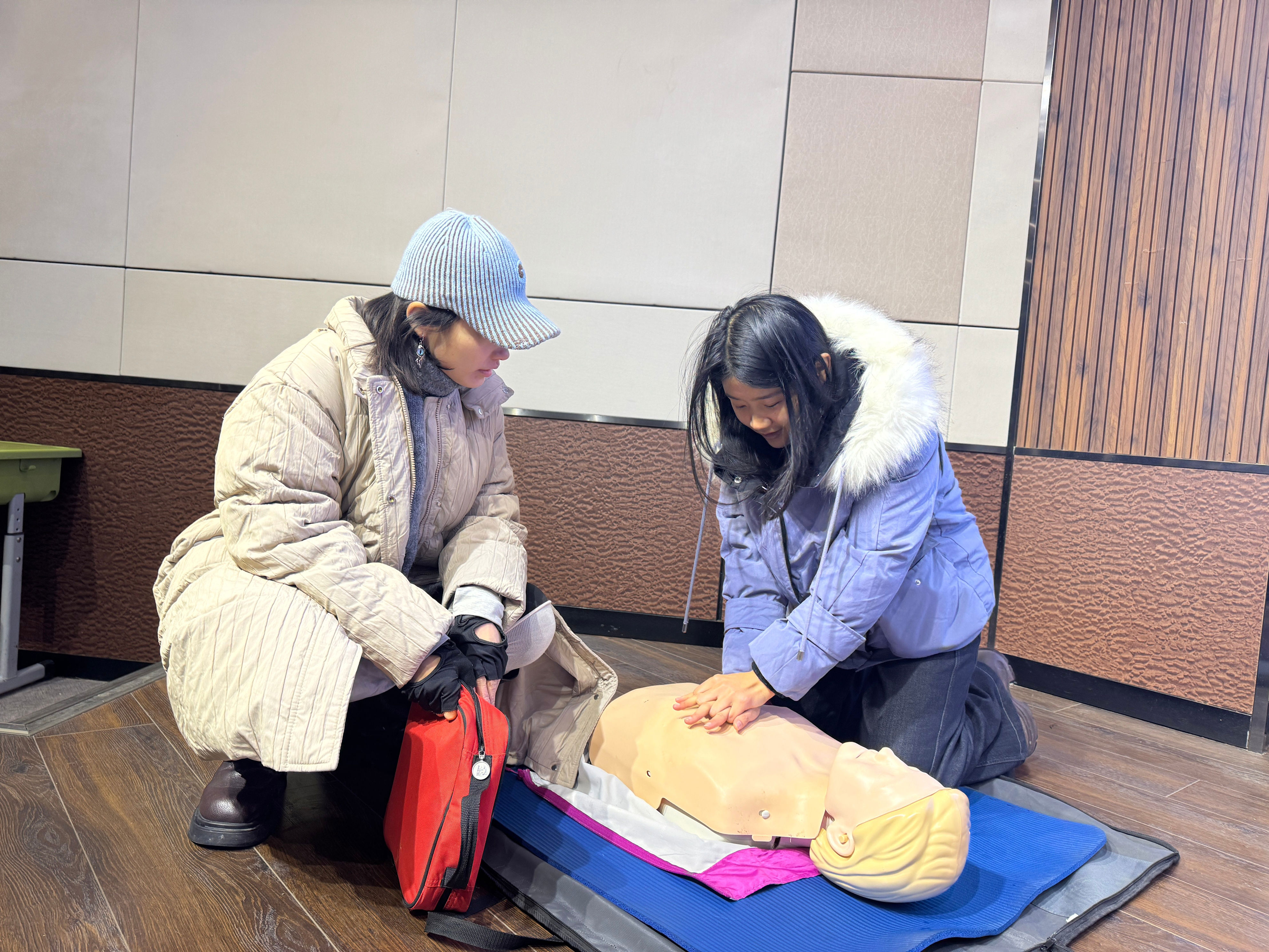 据了解,培训内容紧密结合校园常见应急场景,涵盖心肺复苏(成人及儿童)、自动体外除颤器(AED)使用、气道异物梗阻急救(海姆立克急救法),以及外伤、胸痛、卒中识别与初步处理等关键技能。郑州陇海医院急诊科专家团队通过理论讲解、操作示范、模拟演练相结合的方式,确保参训人员准确掌握知识要点与操作规范。培训过程中,全体学员态度认真、积极练习,在专家指导下,急救技能的实际应用能力得到稳步提升。